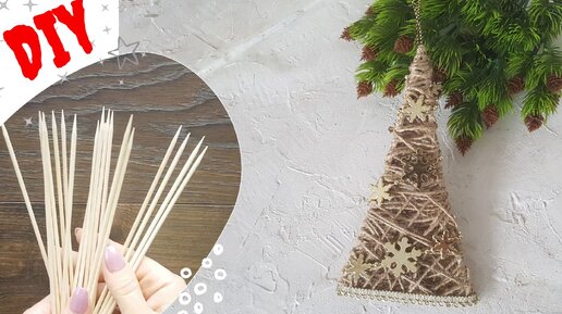 Простая новогодняя ёлочка из деревянных палочек и джута