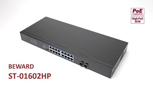 Обзор BEWARD ST-01602HP: 16 портов RJ-45 1 ГБит/с (High PoE 30W) , 2 порта SFP, PoE бюджет 230W