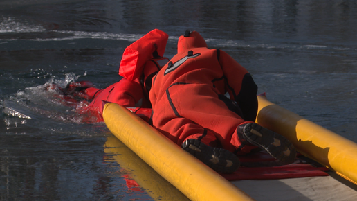 На острове Юность в Иркутске проходит открытый урок по спасению и самоспасению при провале под лед — прямое включение Влада Бараненко