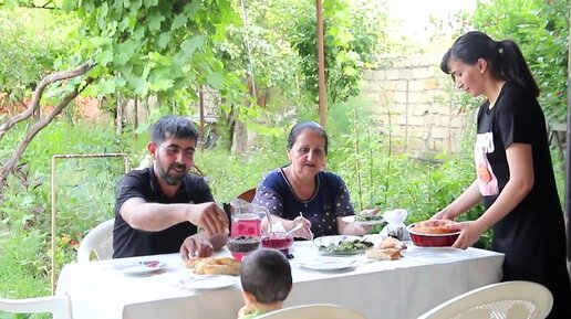 Дедушка и бабушка запекали варенье из ягод шелковицы _ вишневое варенье и печенье из огородных трав _ село Шамкир