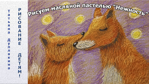 Рисуем нежную картину масляной пастелью на крафт бумаге "Мама лиса и лисёнок"