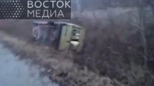 Автобус с детьми опрокинулся в кювет на скользкой дороге в Приморье! В автобусе было 14 детей и один 66-летний водитель
