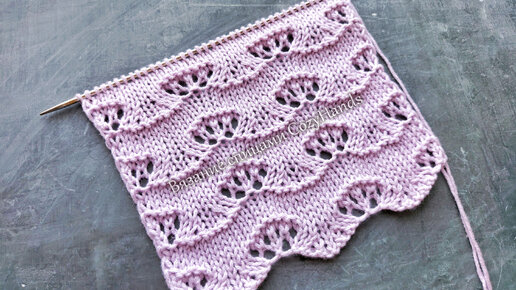 Волнистый узор с ажурными ракушками для вязания джемпера, палантина