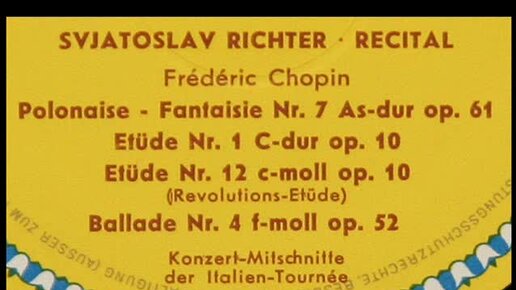 Рихтер Шопен Баллада № 4 фа минор, соч. 52, Италия, сольный концерт, запись "Дойче граммофон," 1962