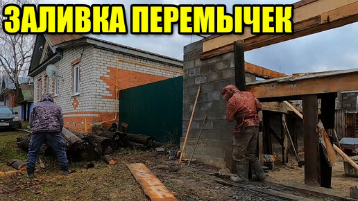 Гараж из керамзитобетонных блоков. Подготовка и заливка перемычек