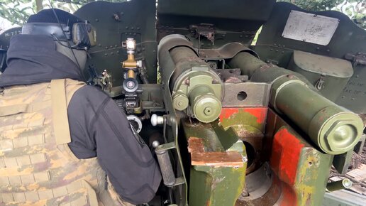 Боевая работа гаубицы Д-20 русского десанта в районе Соледара, ДНР.
