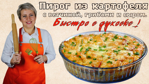 Пирог из картофеля, с ветчиной грибами и сыром. Быстро и очень вкусно! В духовке.