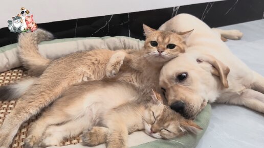 Лабрадор моет кошек британских шиншилл 😂 Mилые питомцы в одной цветовой гамме 🐕🐈🐈