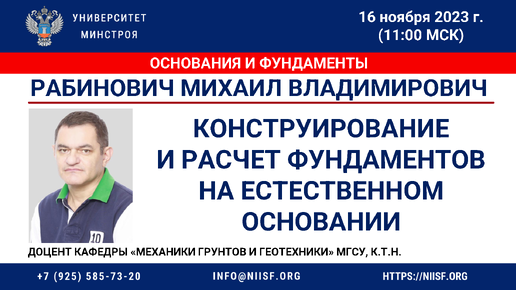 ВИДЕО. Рабинович М. В. Конструирование и расчет фундаментов на естественном основании