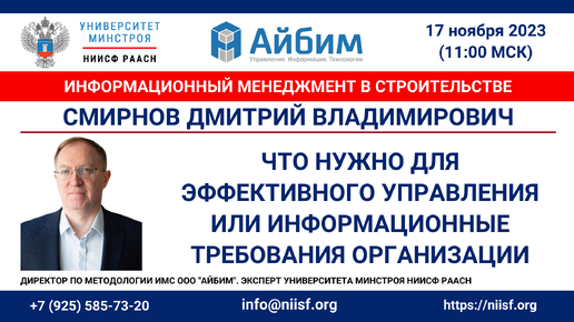 ВИДЕО. Смирнов Д.В. Что нужно для эффективного управления, или информационные требования организации