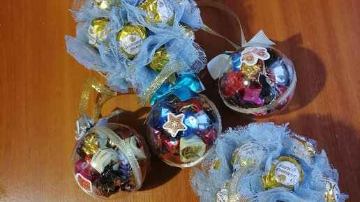 Делаем новогодние подарки!!! Шары из конфет своими руками, быстро и просто!!!