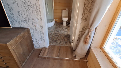 Подиум для душевой кабины и унитаза из пеноплекса. Дополнительный санузел в деревянном загородном доме.