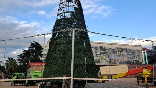 В Сочи Навагинскую улицу готовят к Новому году даже во время дождя