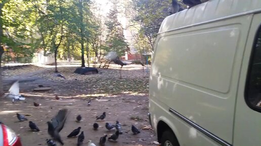 Кормёжка собак и голубей. Белый бус - это наш
