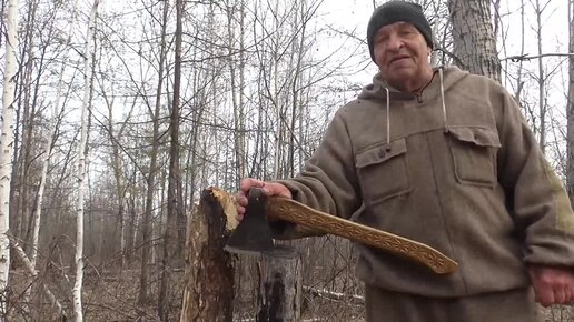 Рубим дерево эвенкийским топором