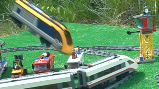 Поезда Лего Прыгают с трамплина и падают - Замедленная Съемка.