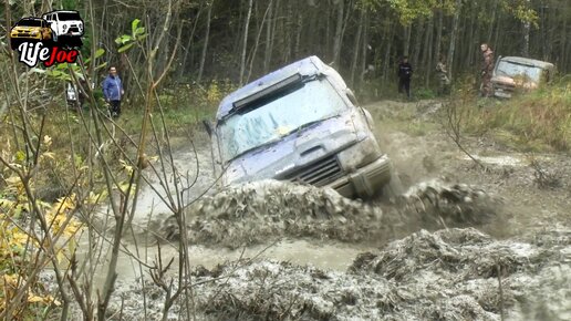 Всё как мы любим! Колеи, глубокие лужи и грязь! Бездорожье началось. офф роад УАЗ Хантер, Митсубиси Паджеро