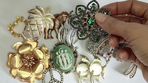 107. Разные броши, немного украшений на шею. Продолжение распаковки большого лота. Часть 6.