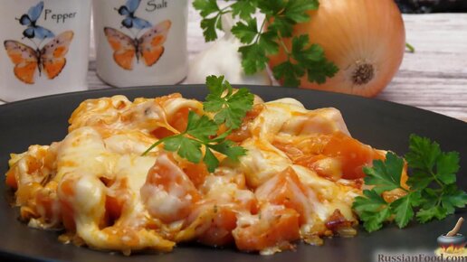 Кисло-сладкое блюдо под сыром. Тушёная тыква в томатном соусе с сыром