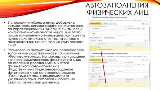 Автозаполнение физических лиц