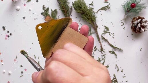 Такие игрушки на ёлку продают везде, а я сама раскрашиваю домики акриловыми красками