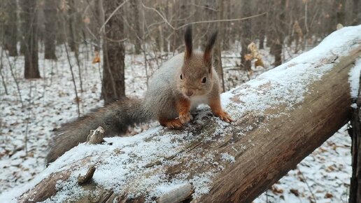 Пришли с белкой к упавшей сосне