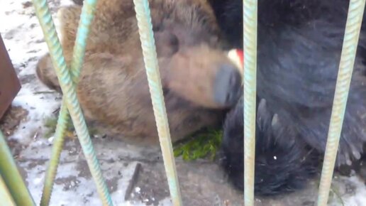 Тонечка, как и все наши медведи любит есть лёжа. Архив