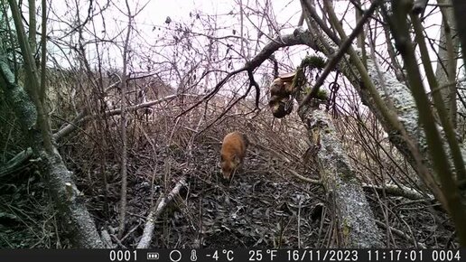 Лисица гуляет по лесу среди бела дня