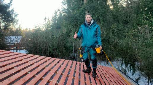 Стройка(Монтаж обрешётки под кровлю)