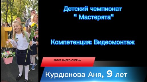Чемпионат профессионального мастерства " Мастерята". ( kidskills) Компетенция: Видеомонтаж. 3 класс Курдюкова Анна Школа 1601.
