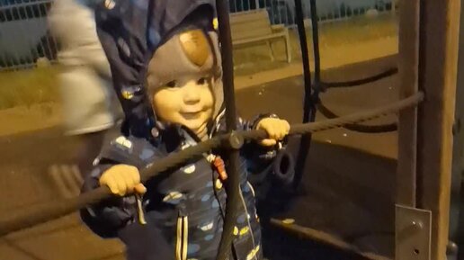 10 мес. На прогулке. Сын нашёл, где можно стоять. ☺️