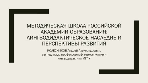 Методическая школа Российской Академии образования: наследие и перспективы развития