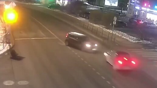 Желтый свет обманул надежды двух водителей, попытавшихся проскочить перекресток в Красном Селе. Столкновение записали камеры