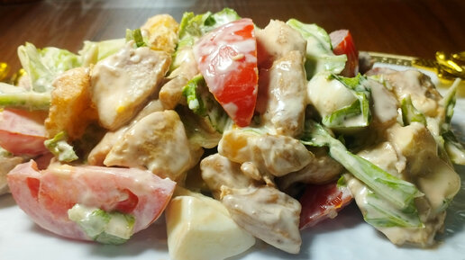 Салат Цезарь.Самый простой но очень вкусный вариант.