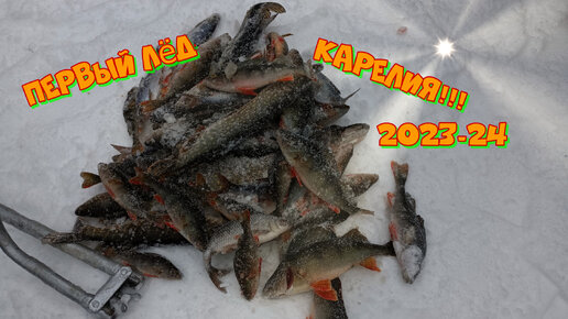 Первый лёд Карелия 2023-2024!!!. Рыбалка на окуня. Установка жерлиц на щуку. Отличная рыбалка.