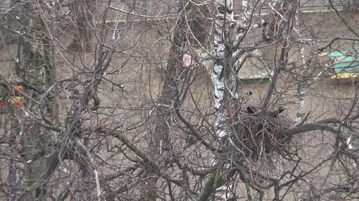 Молодой грач пытается строить гнездо