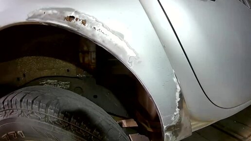 Ремонт правого заднего крыла на Мицубише.