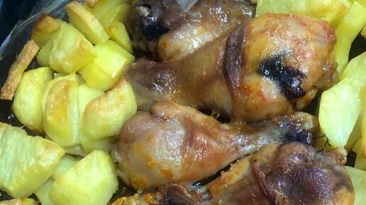 Что приготовить на ужин? Курица с картошкой в духовке.