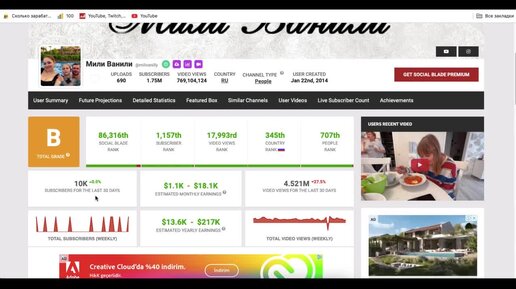 Доход с 5 каналов семейства МАМА ОТЛИЧНИКА&МИЛИ ВАНИЛИ с монетизации на ютубе за последние 30 дней