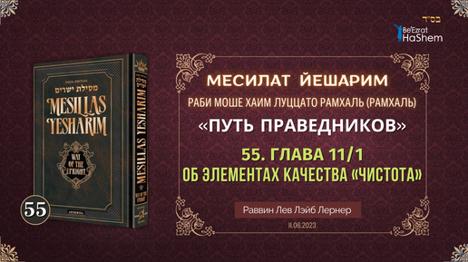 𝟓𝟓. Месилат Йешарим 11 | Об элементах качества «чистота» (1) | Рабби Лев Лэйб Лернер