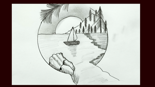 РИСОВАТЬ КАРАНДАШОМ - ОЗЕРА, ГОРЫ, ПАРУСНИК
