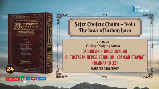 𝟮𝟰. Сефер Хафец Хаим | Мицва 8. "Вставай перед сединой, уважай старца" (Ваикра 19:32) | Рабби Лев Лэйб Лернер