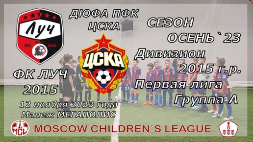 ЛУЧ`2015 - ДЮФА ПФК ЦСКА Запись футбольного матча 12 ноября 2023 года