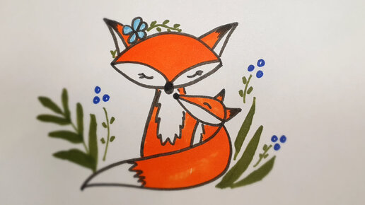 Простой рисунок к Дню матери! Мама лиса и лисёнок