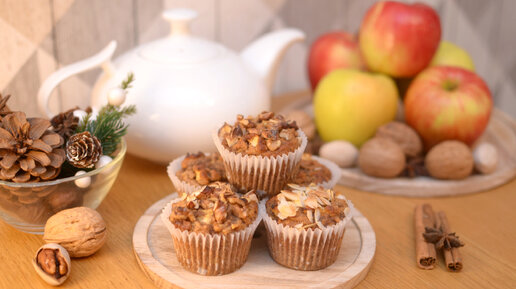 Миндальные маффины с яблоками и мёдом. Нежные и ароматные. Без глютена, масла и рафинированного сахара