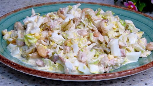 Один из моих любимых салатов, потому что вкусный и готовится по-быстрому. Когда то он очень меня удивил.