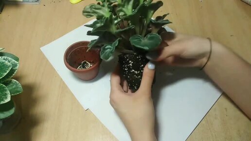 Пересадка фиалки на фитиль