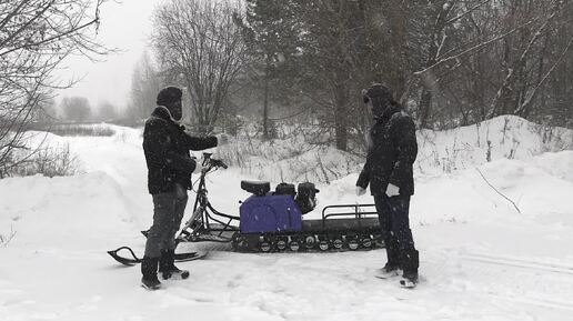Мотобуксировщик ЛИДЕР-3 на длинной гусенице SUPERLONG 500х3636 мм. Обзор, покатушки по первому снегу