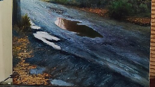 Как рисовать дорогу и листья мастихином|пишем грязь на дороге мастихином #живопись #art #мастихин