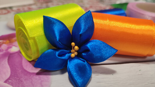 Василек, техника – канзаши: обратный лепесток или лепесток на изнанку.